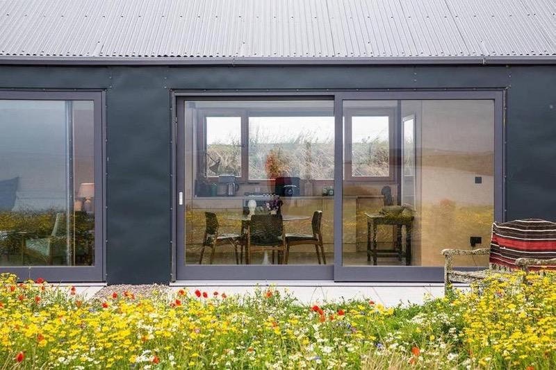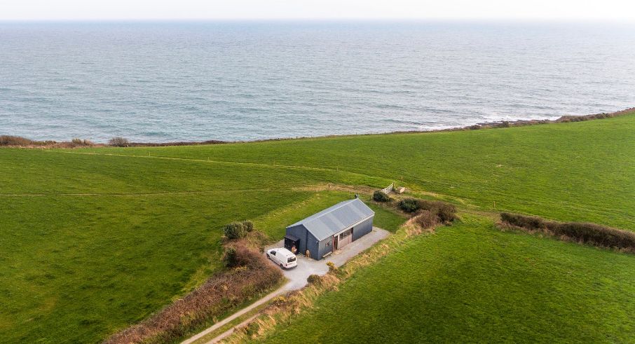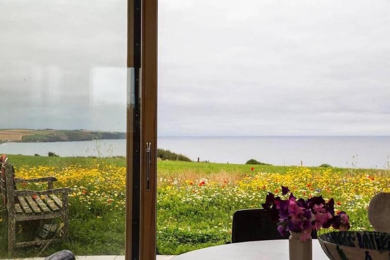 The Studio looks out on four acres of wild meadow and towards the sea –